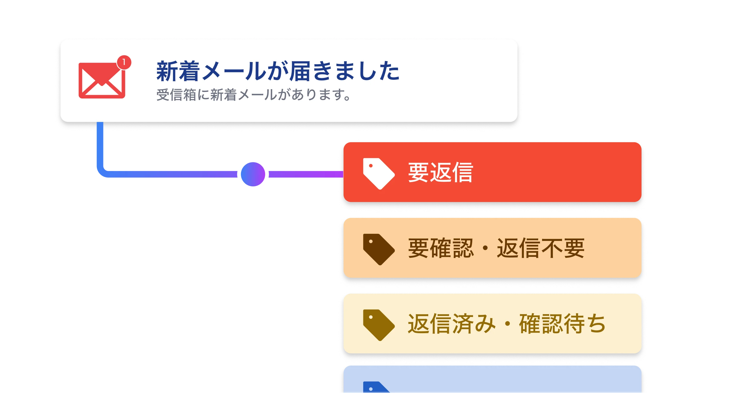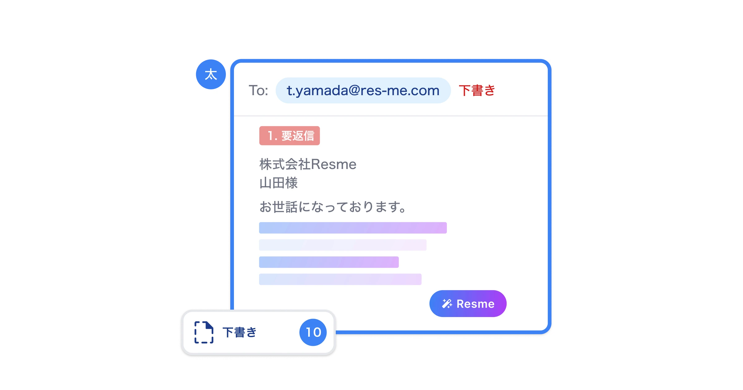 受信したメールを内容をもとにAIが自動で思考し、返信が必要なものに対して自動で下書きを作成します。やるべきことは下書きを確認して送信ボタンをクリックするだけです。