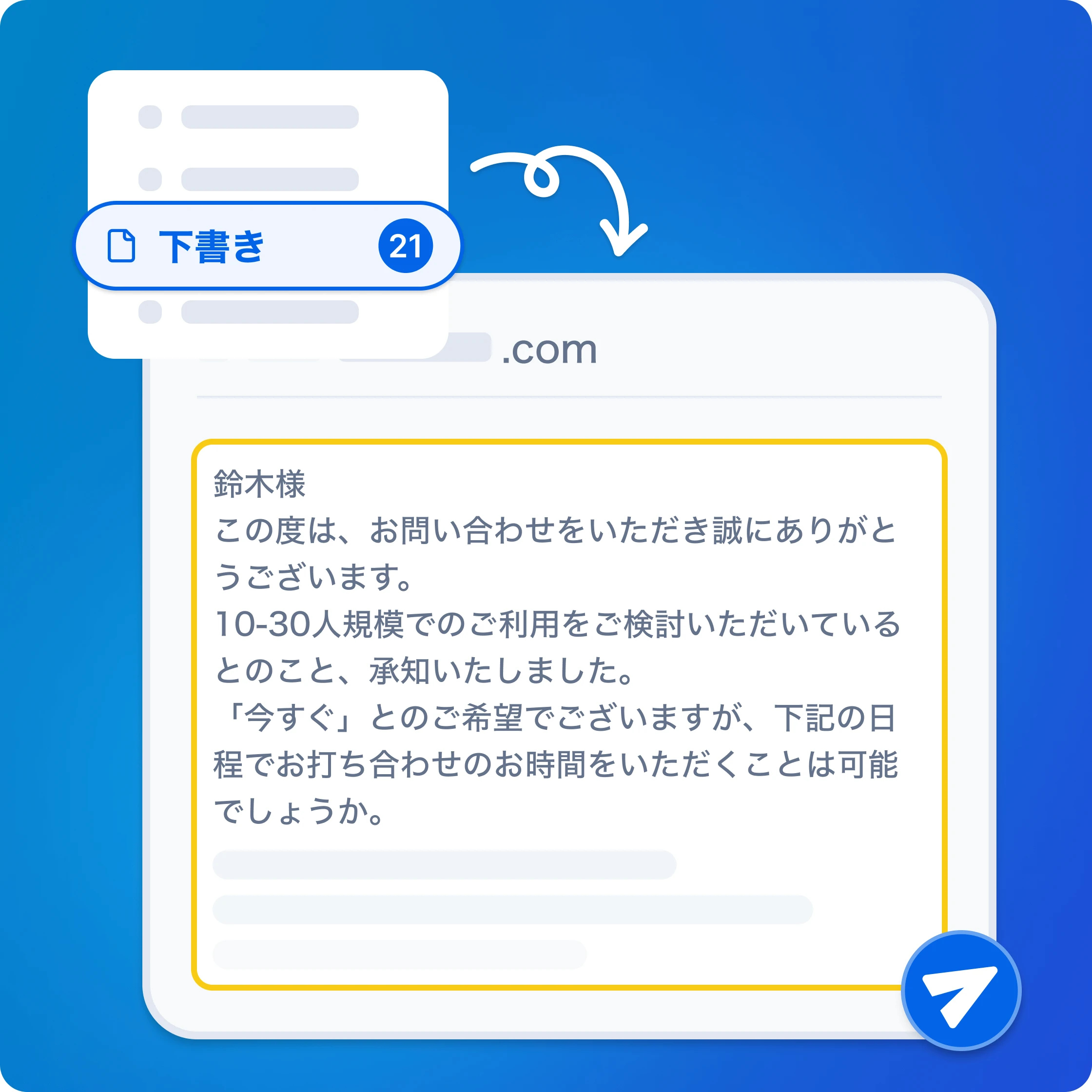 自動ラベリングで「要返信」と判断されたメールにのみAIが自動で下書きを作成します。