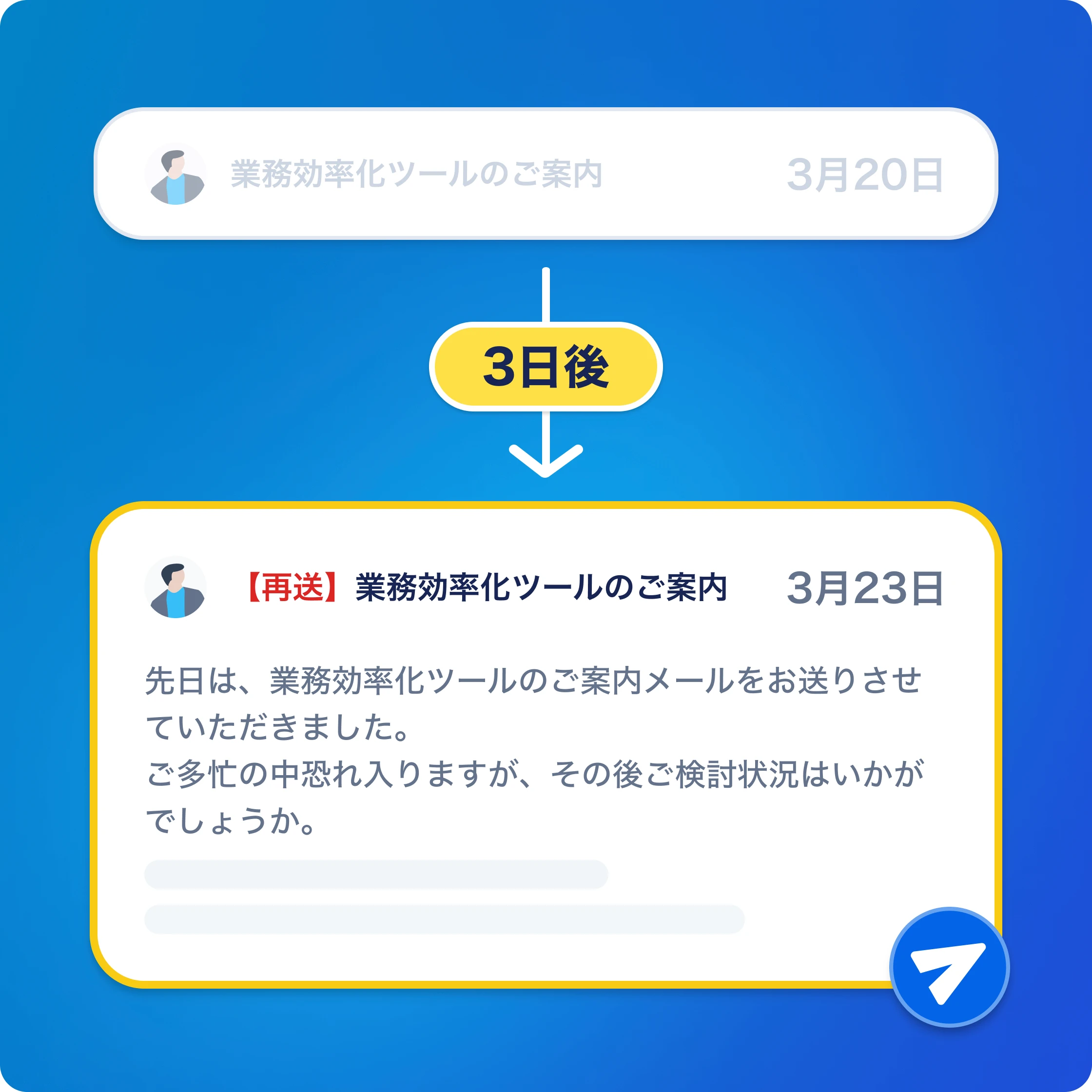 レスミーでは返信が来ていないメールに対して適切な日時が経過したら自動でフォローアップメールを作成するので、もう機会損失が起きることはありません。