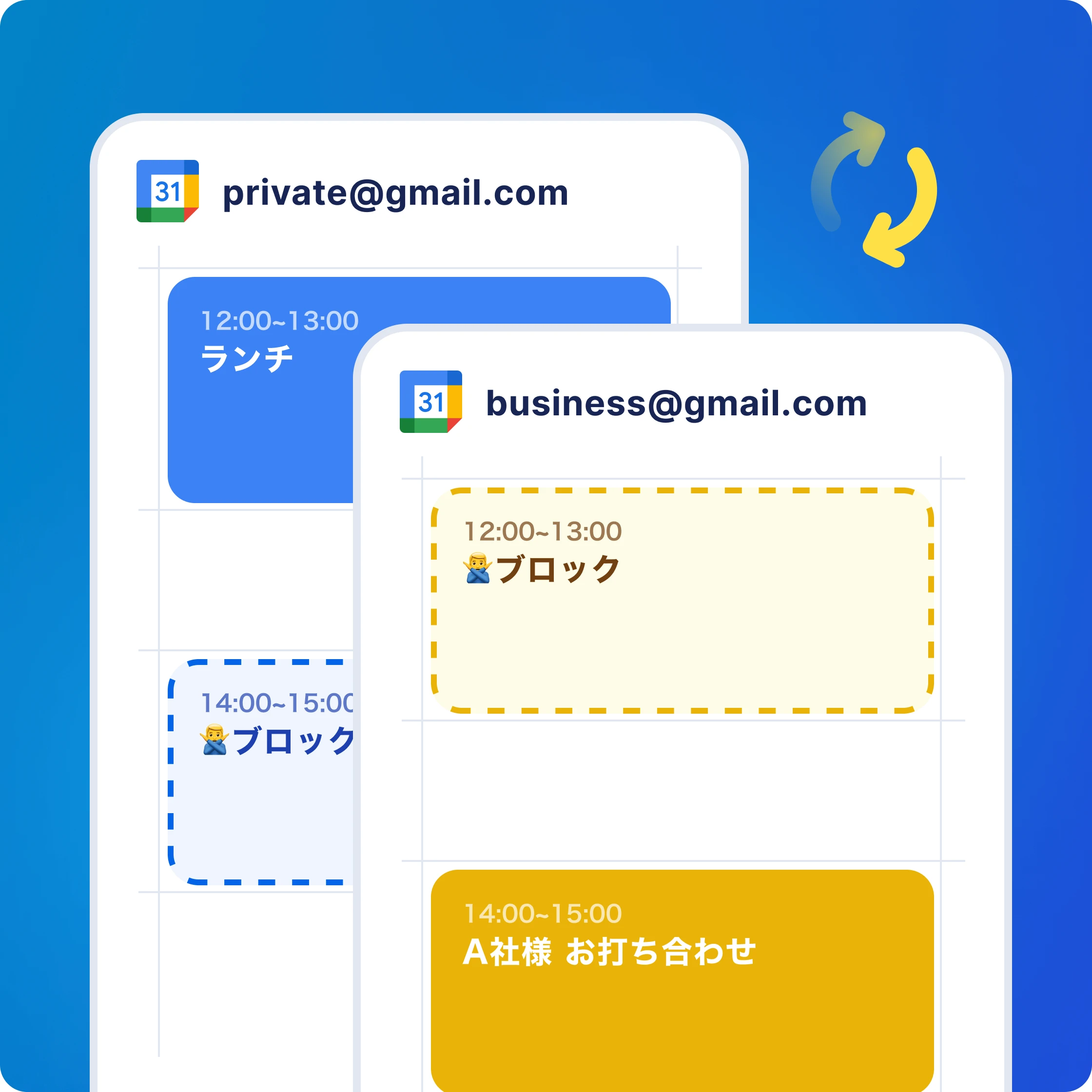 複数のカレンダーを連携させ、それぞれのカレンダーに「ブロック」などカスタマイズした文章でブロックすることができます。