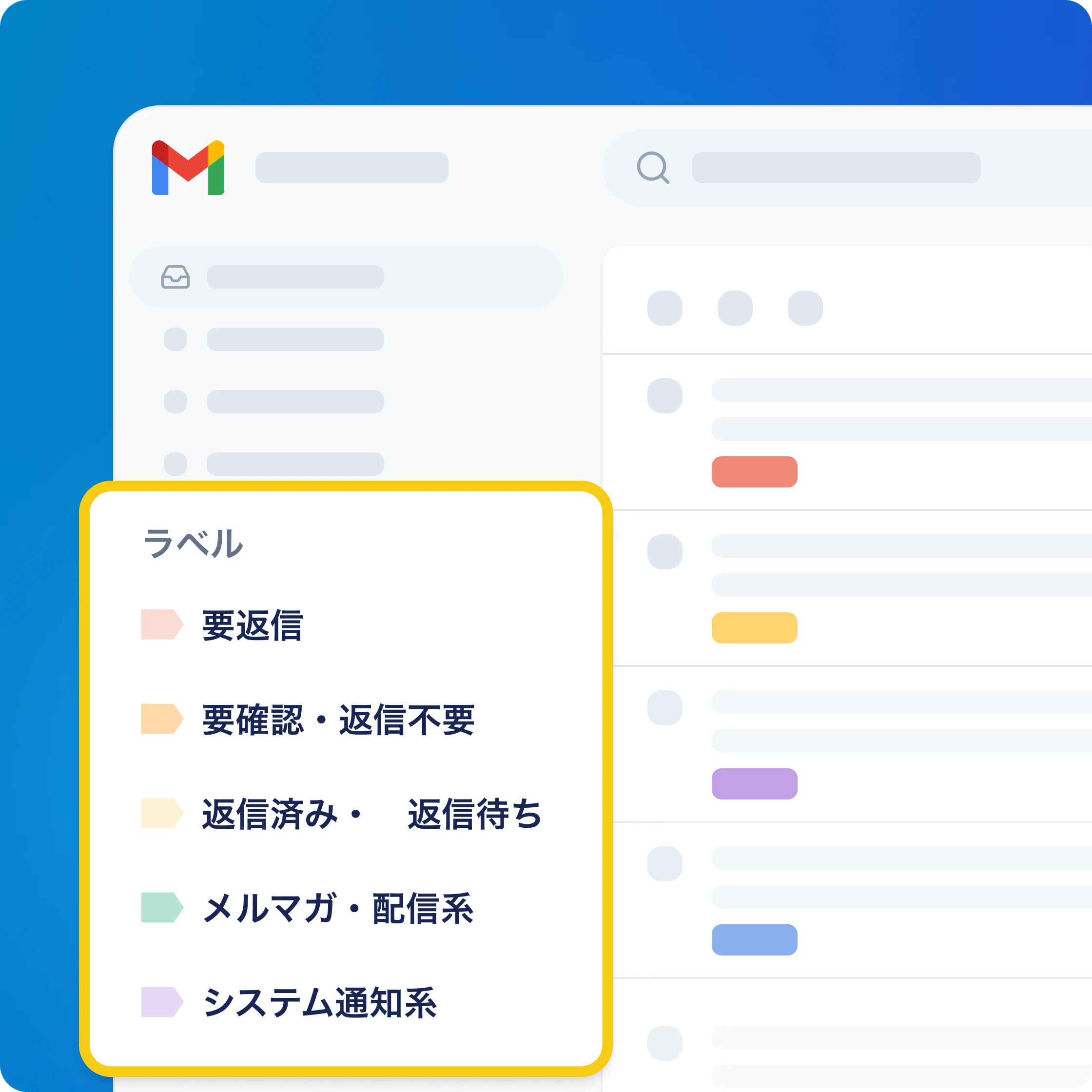 1日に大量に受け取るメールを全てAIが解析し、適切なラベルへ分類します。